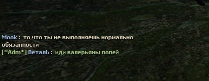 17. Не не, Мук это я, в смысле мы прикалывались там с ним и Энумой. Я не прошу никаких выговоров, просто неприятно, когда просишь помощи у администратора, который тебя полностью игнорит, и затем посылает. Честно, уже не только я жалуюсь на него, в смысле Энума говорит, что администратор он не очень, Саня тоже сказал, что он почти не играет и лишь бесит. Просто как то пните его, что бы он хоть что то делал. Администрация Изучаем правила: 2.1. Запрещается использование в игре чужих Имён (Ников) и Клан-тэгов.