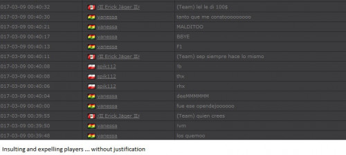 In the next capture he accuses me of expelling the player "" spik112 "" without cause, that is a lie, the player "" spik112 "" when he enters to play does not do more than "" troller "" to the players, throwing vomitonas and burning All when we reach the shelter, even disable and not help, I have friends who complain about the same player, I was even informed that it was banned by an administrator on the mega survival server.